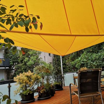 - bei tiefstehender Sonne sind die Segelenden höhenverstellbar